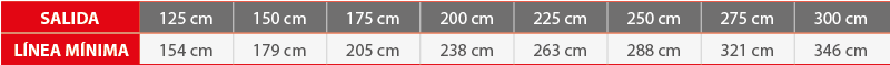 hasta 6 m de línea por 3 m de salida.