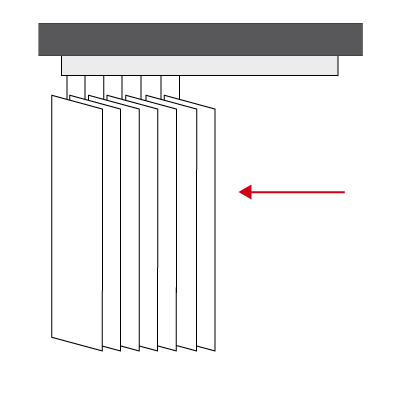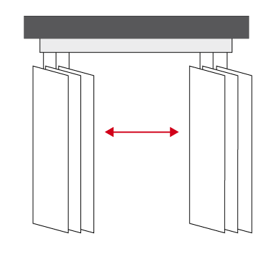 Usted puede escoger el sentido de repliegue de las lamas según la disposición de su espacio o apertura de puertas.